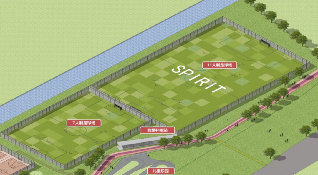 公园内配备了网球场、篮球场、足球场、儿童游乐区等等多样化的专业运动场地,满足不同人群的需求。 足球场 拥有标准的11人制和7人制足球场,场地灵活性强,兼容飞盘、棒球、橄榄球等多种运动。这里可举办青少年足球培训、市区级足球比赛、企业户外团建,甚至能变身为小型音乐会舞台,让运动与文艺精彩碰撞。
